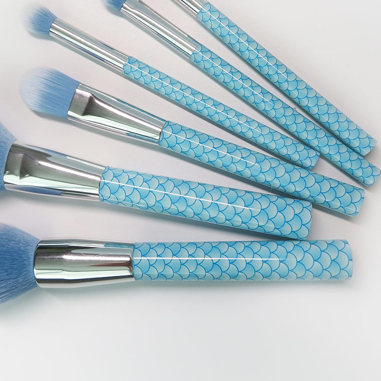 Blue Ocean A Set Of Six Cosmetic Brush Fish Scale Patterned Handle